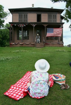 | JULY 5, 2010 -- The historic Oliver Kelley Farm in Elk River celebrated a Farmer's Fourth of July with special events, including 19th century games and an lecture from the front porch.